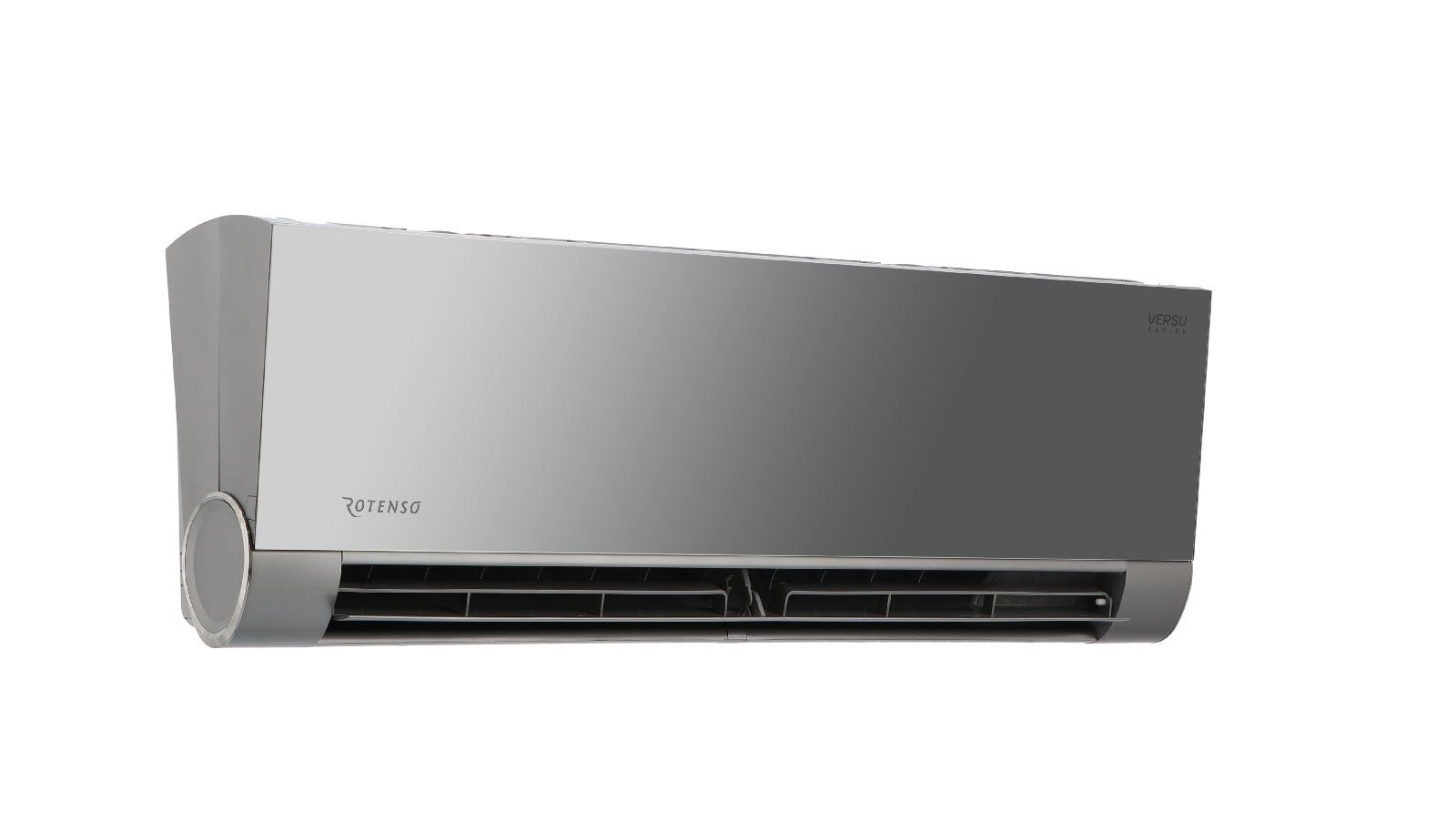 Klimatyzator Rotenso® Versu Mirror jest dedykowany klientom ceniącym ekskluzywny design. Grafitowa kolorystyka oraz lustrzany panel frontowy podkreślają prestiż urządzenia i znakomicie komponują się z nowoczesnymi wnętrzami. Luksusowy charakter Versu dodatkowo uwydatnia subtelne podświetlenie – błękitne podczas trybu chłodzenia, pomarańczowe podczas grzania.